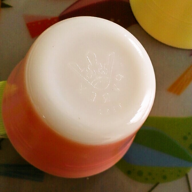 透明のグラスウェアだとこんなふうに上から見てちゃんと読めるようになってるものがあるらしいのですが(←詳しくなくてすいません)ミルクガラスじゃ見えないよなー。