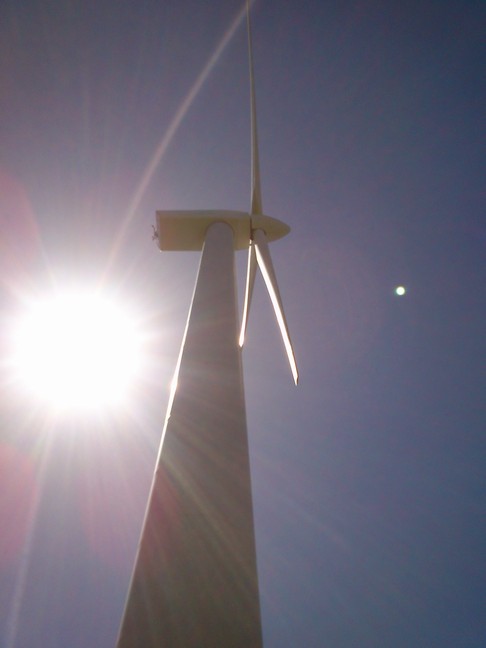 風力発電のタービンがあるところへ。
