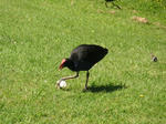 プケコという鳥なのですが、パンあげたら片足でつかんで食べよるのですよ。