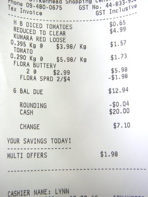 NZでは1990年に1セントおよび2セントコイン、2006年に5セントコインが廃止になったので、買物の際に発生する端数はお店によって四捨五入とか五捨六入とかされるのです。